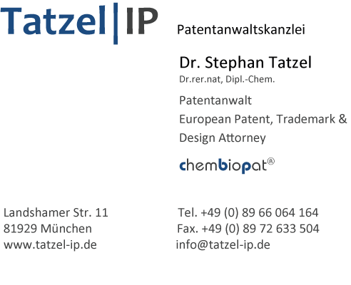 Copyright: © 2014 Patentanwaltskanzlei Dr. Stephan Tatzel, München. Alle Rechte vorbehalten.